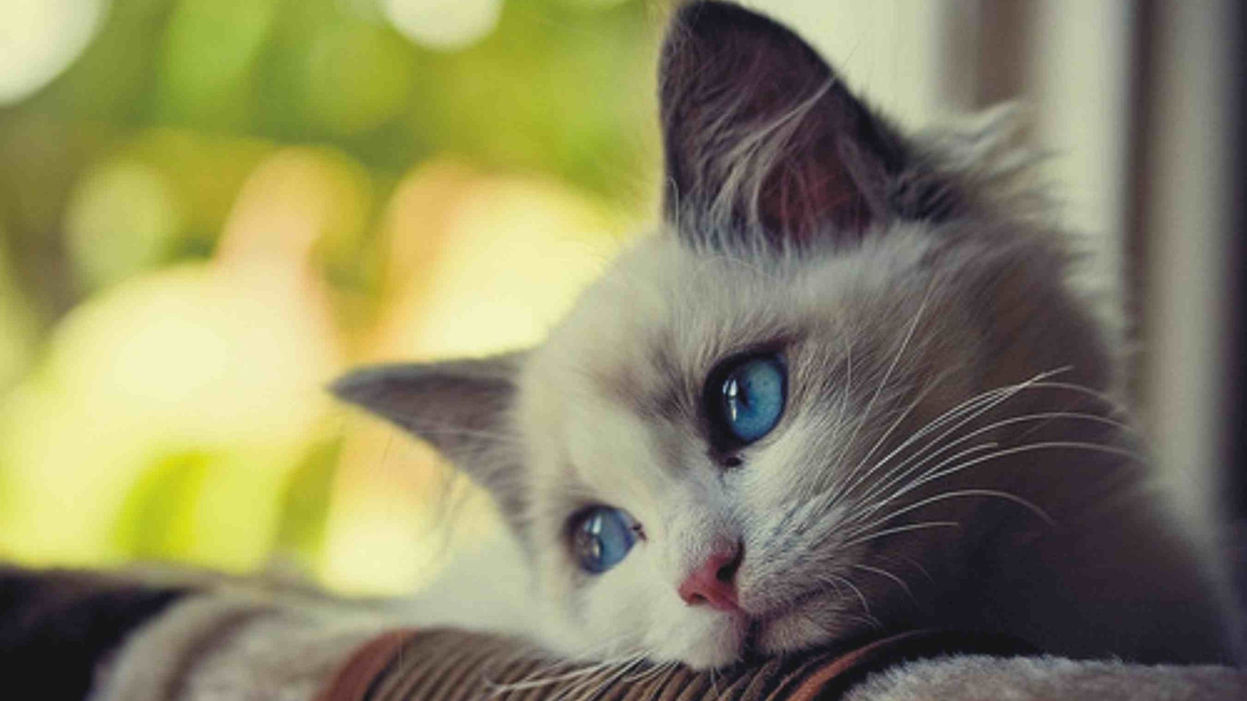 Gentle window light and bright blue eyes give this blue eyed kitten wallpaper a calm, intimate feel without getting busy.