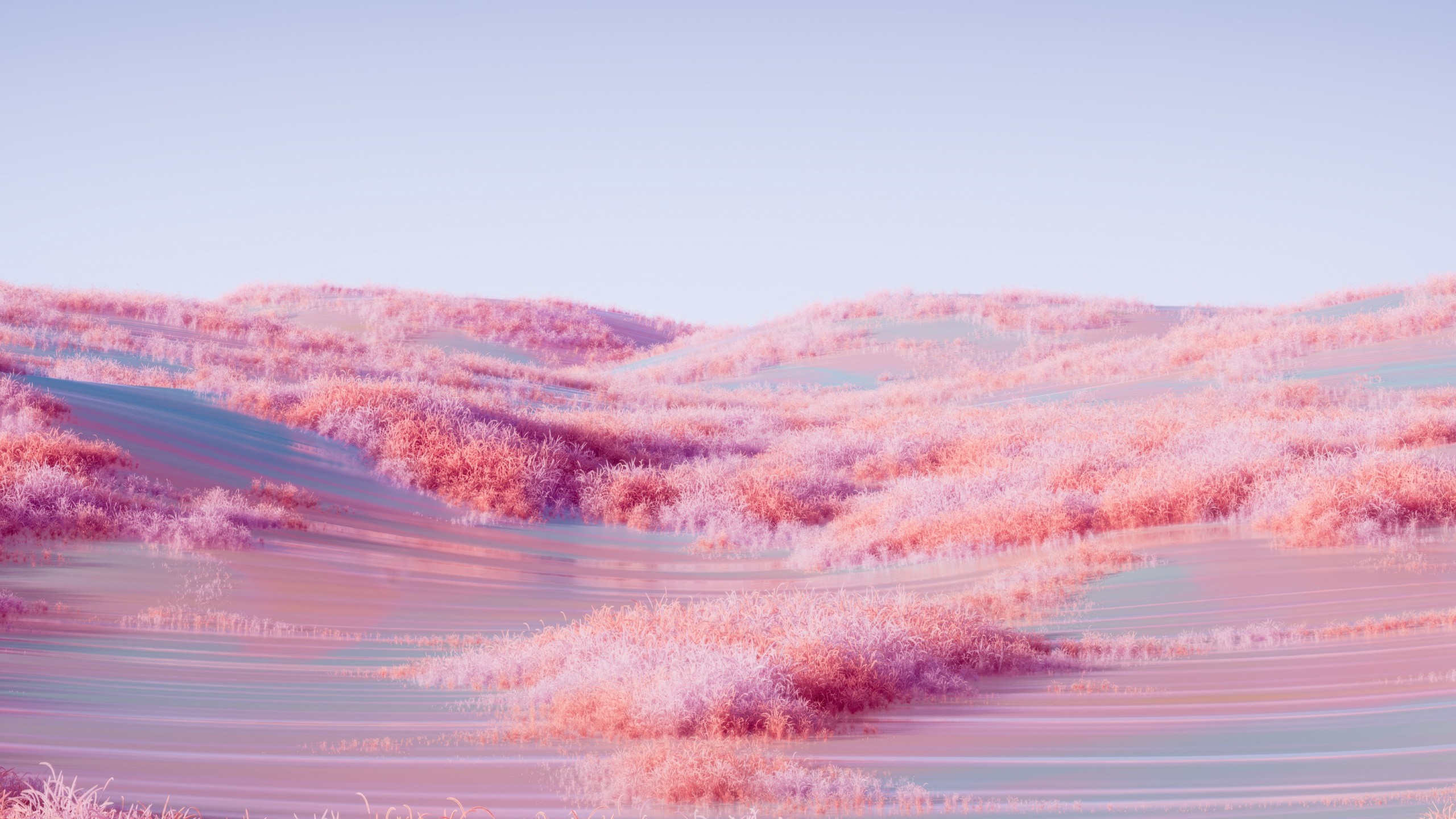 Soft hills, cotton-candy highlights, and a wide open sky—this pink landscape wallpaper is built for ultra-wide setups that need calm color without visual noise. The scene stays airy and light, with gentle texture that reads clean from a distance.